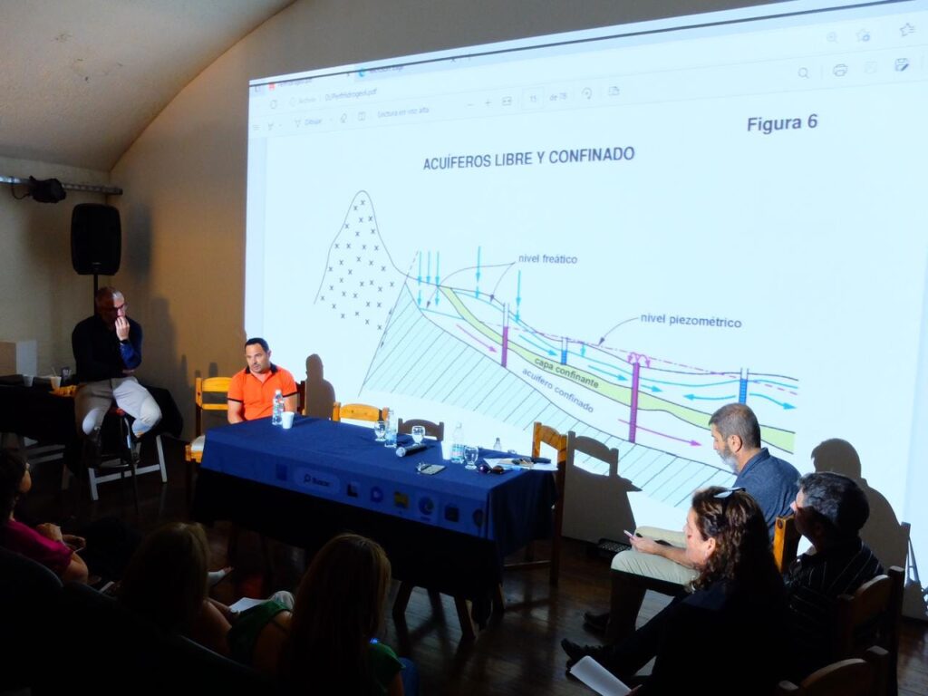 A ellos se sumó el geólogo Pablo Toledo, de la Administración Provincial de Recursos Hídricos (APRHI), quien explicó cómo funciona el sistema de acuíferos local y afirmó que el caudal es acorde a la población, aunque el consumo registra niveles bastante altos comparados con los estándares internacionales.
